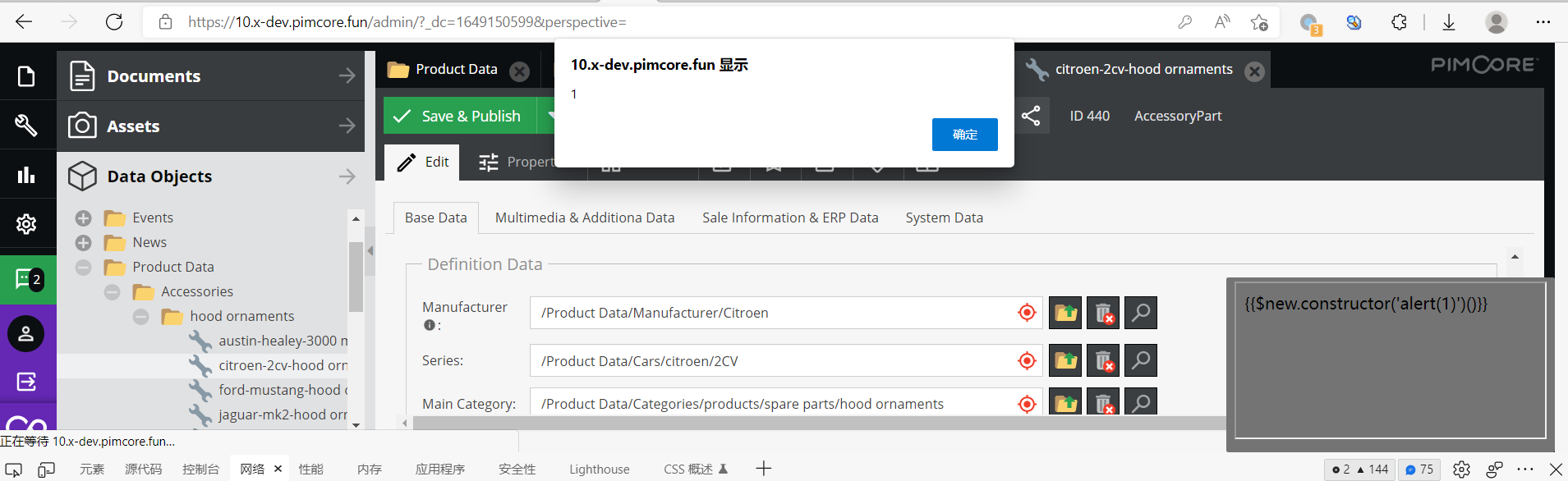 Stored XSS in Tooltip in pimcore/pimcore